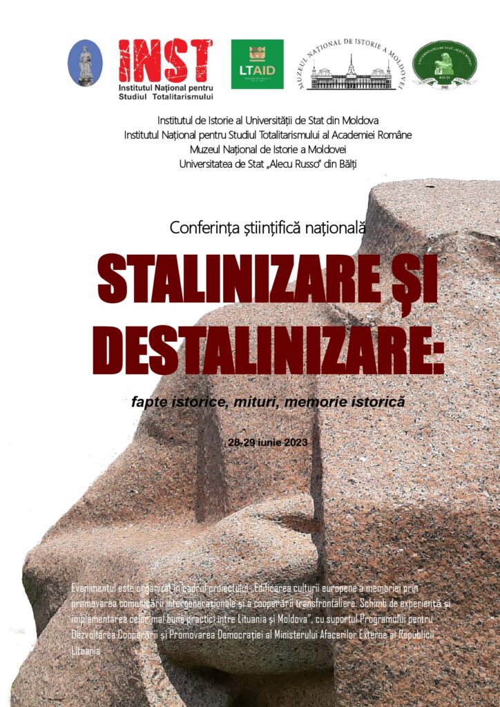 În perioada 28-29 iunie 2023, Institutul de Istorie al Universității de Stat din Moldova, în cooperare cu Institutul Național pentru Studiul Totalitarismului al Academiei Române, Muzeul Național de Istorie a Moldovei și Universitatea de Stat „Alecu Russo” din Bălți, organizează Conferința științifică „Stalinizare și destalinizare: fapte istorice, mituri, memorie istorică”.